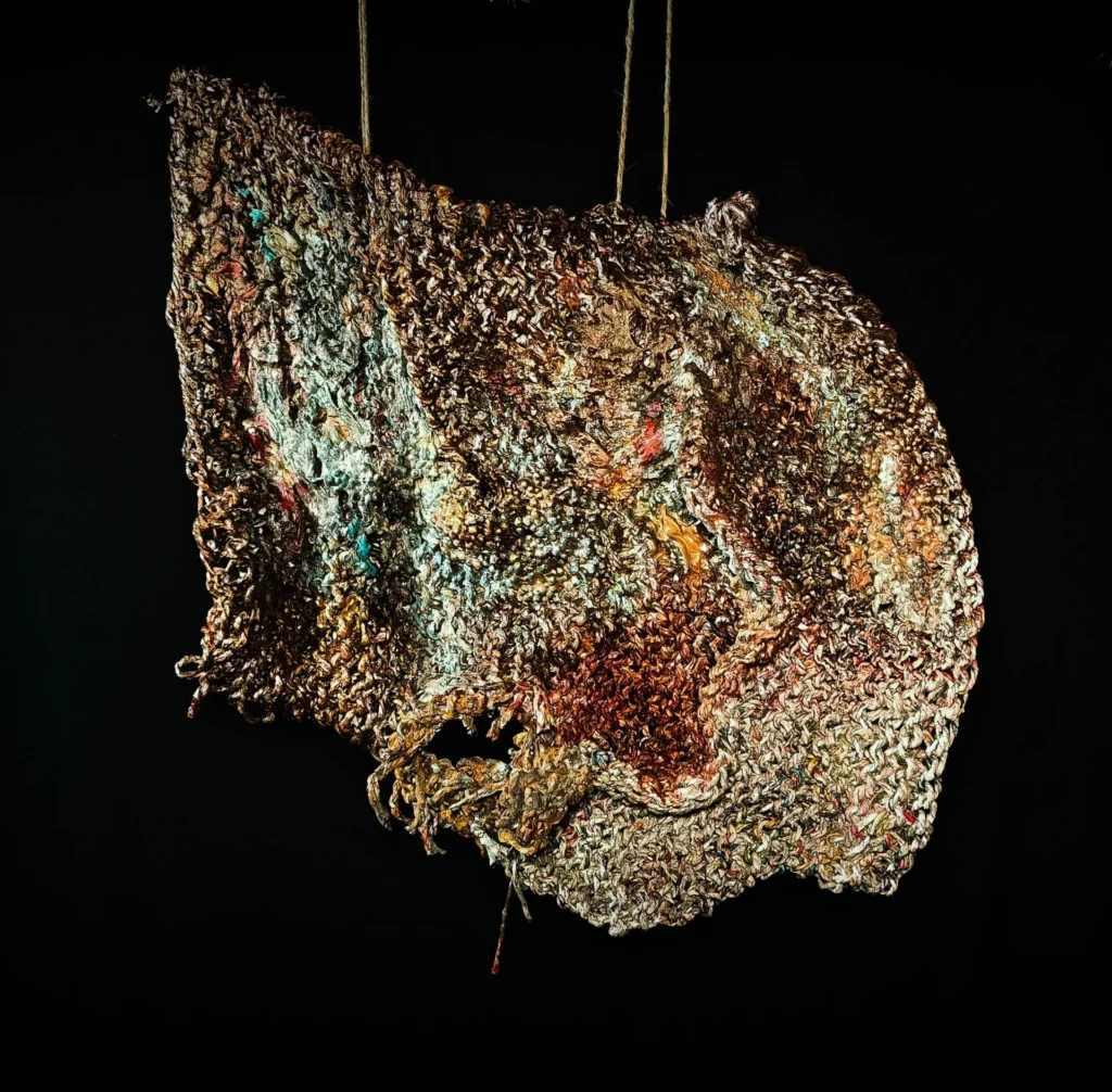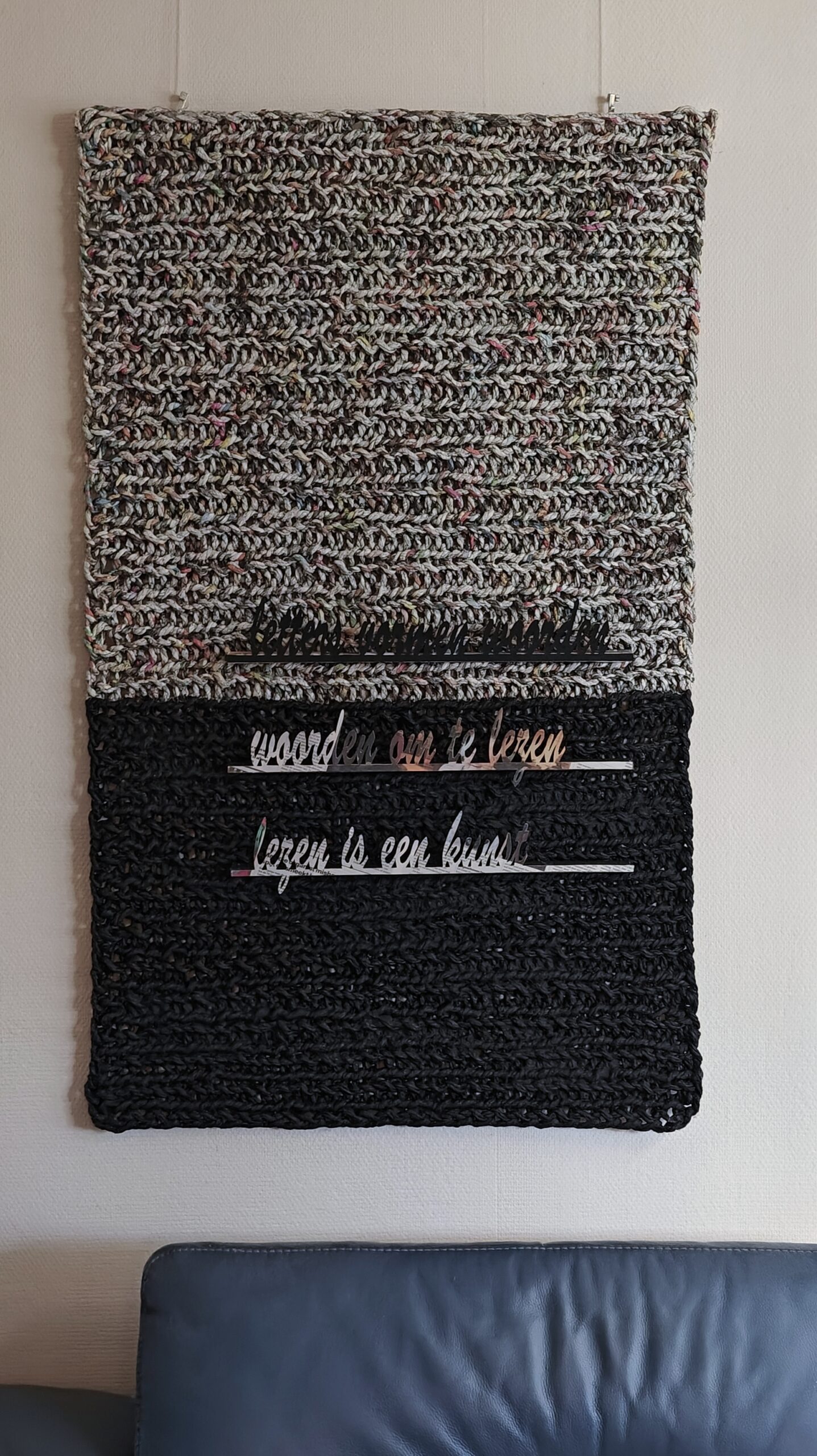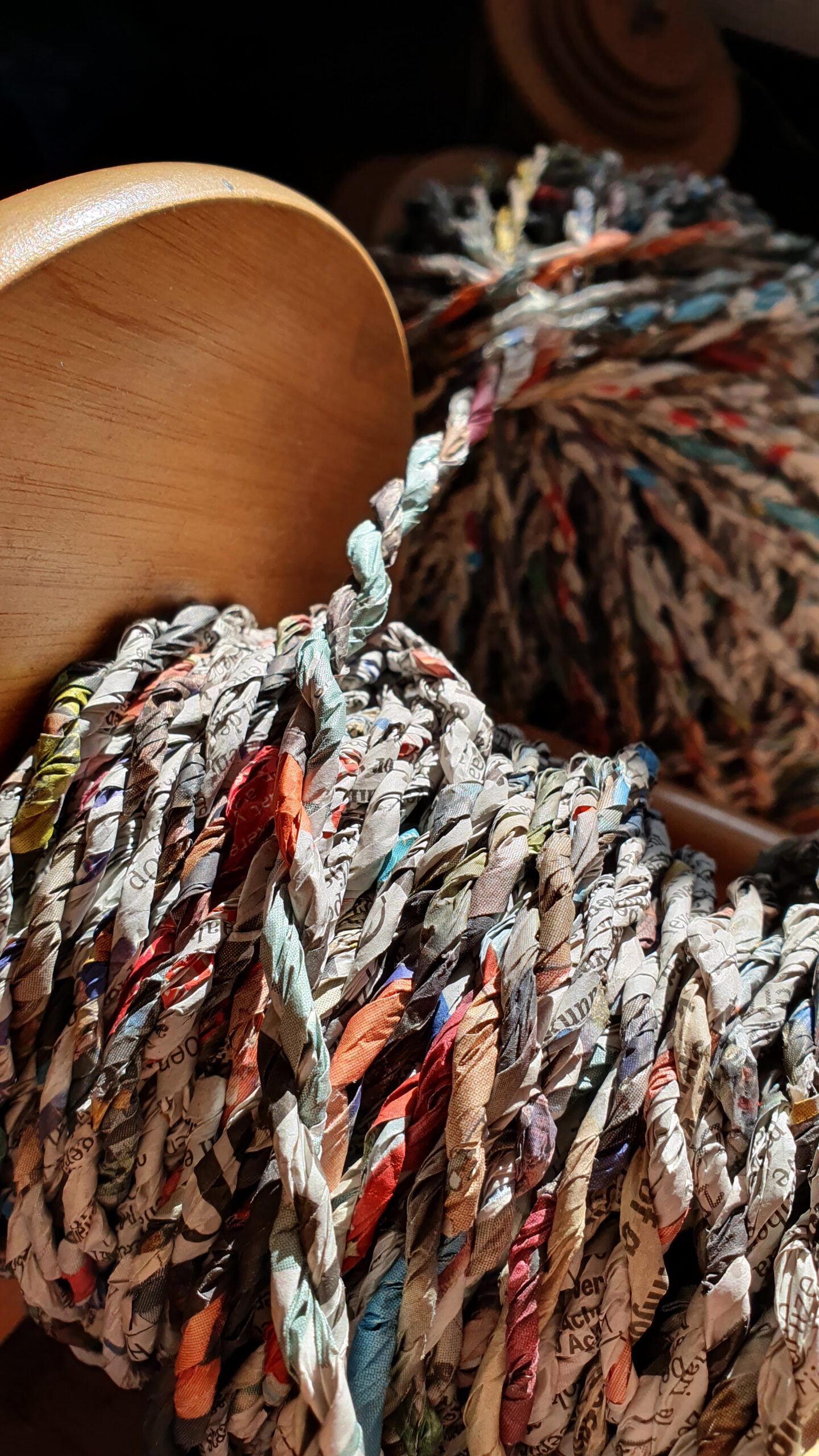 Het kan op diverse manieren verwerkt worden, zoals wij doen met spinnen en daarna breien.